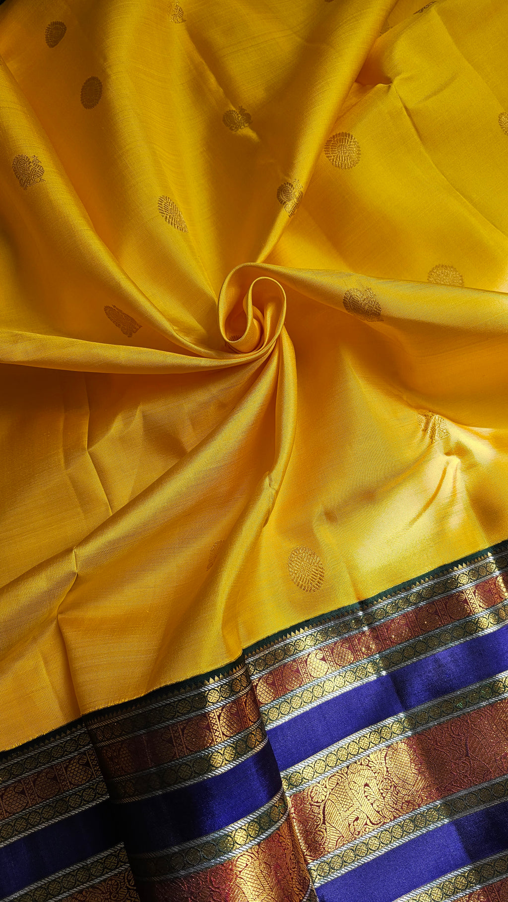 Yellow Korvai Kanchipuram with Navy border and blouse