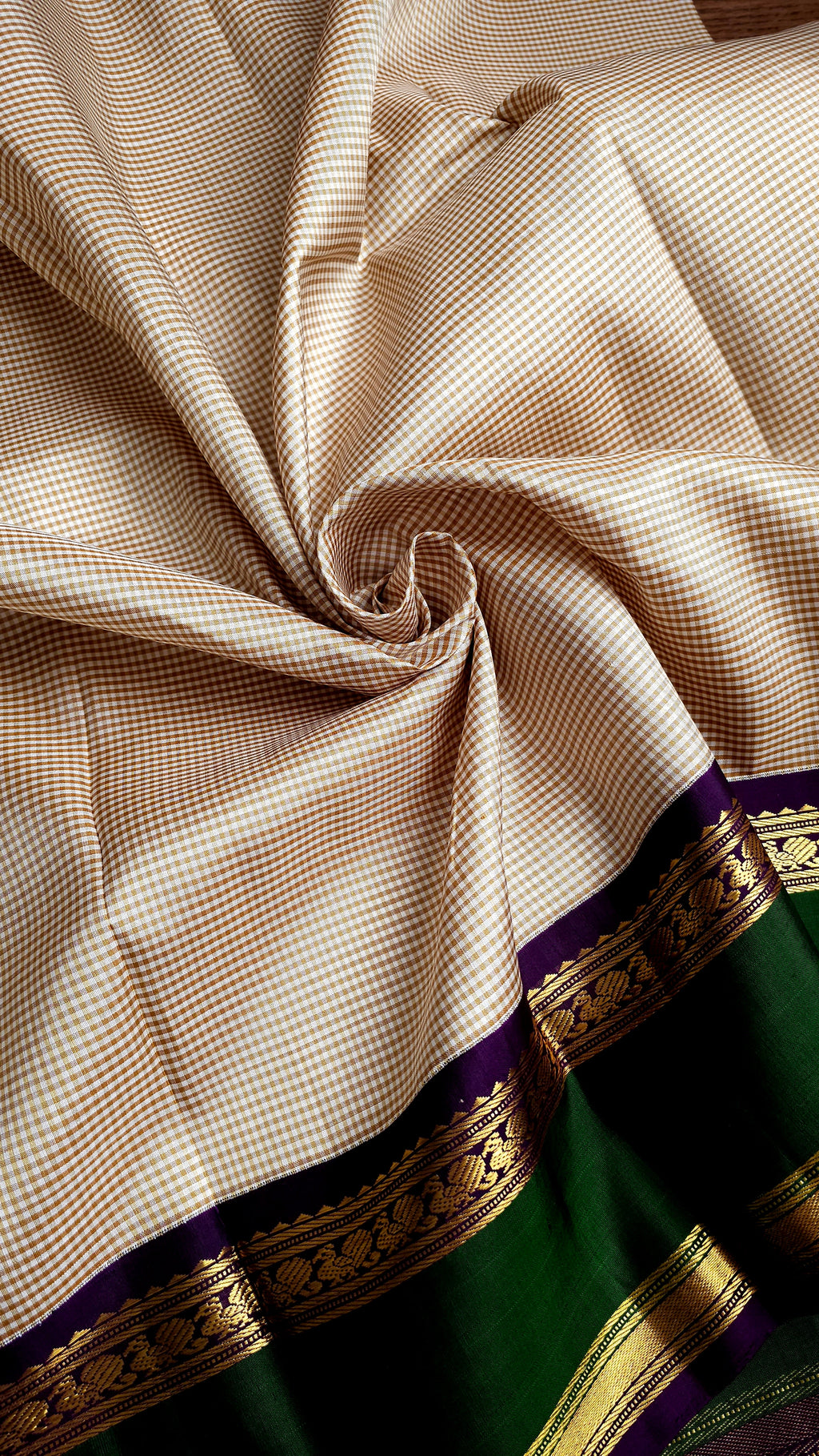 Traditional Ivory checkered Kanchipuram with Red Rettai Pettu border